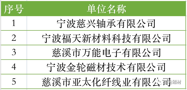 في الآونة الأخيرة، أعلن مكتب بلدية نينغبو للاقتصاد وتكنولوجيا المعلومات عن قائمة المصانع الخضراء من فئة الخمس نجوم والأربع نجوم في نينغبو (النقطة الأولى)، وتم اختيار جينلون للمواد المغناطيسية بنجاح كمصنع أخضر في نينغبو. تم اختيار إجمالي 9 شركات في مدينة Cixi. ومن بينها، تم اختيار 4 شركات كمصانع خضراء فئة 5 نجوم، وتم اختيار 5 شركات كمصانع خضراء فئة 4 نجوم.