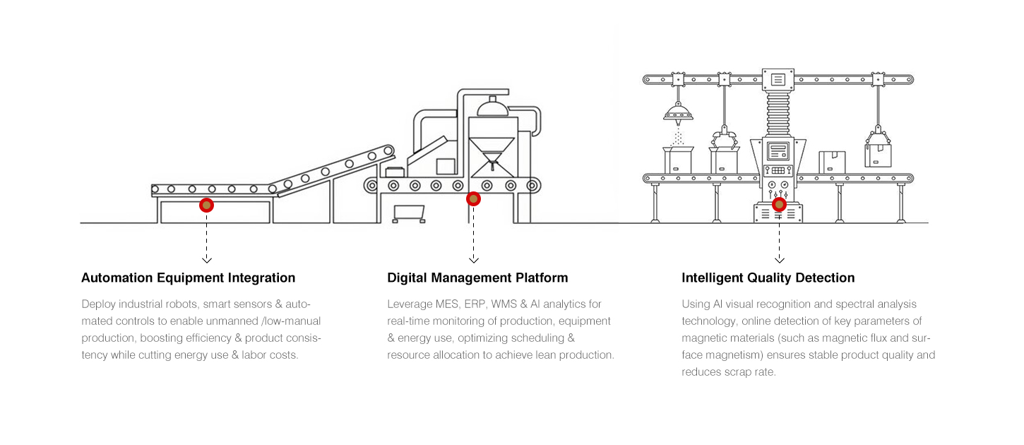 Jinlun Magnet هي مؤسسة مبتكرة تقنيًا ذات حجم إنتاج سريع التطور، وأداء منتجاتها وقدرتها الإنتاجية على مستوى عالٍ في الصناعة. وهي تصر على الترقية المستمرة وتحويل معدات وعمليات الإنتاج لإنشاء ورشة عمل رقمية ذكية تتتبع دورة الحياة الكاملة للمنتجات.