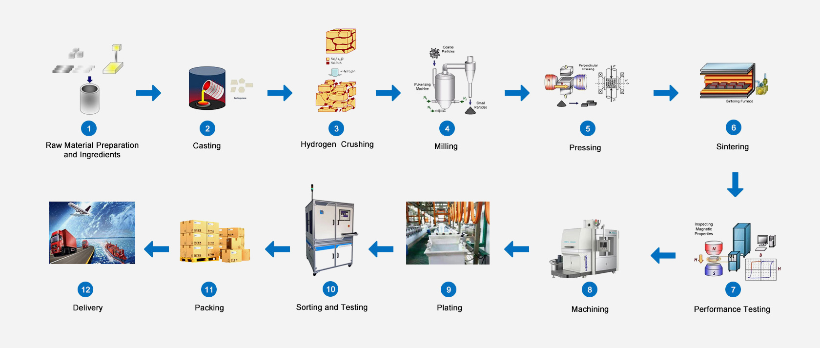 Jinlun Magnet من خلال نظام التصنيع الذكي المعتمد من قبل الأنظمة الدولية مثل IATF16949 وISO9001/14001، جنبًا إلى جنب مع برامج النظام مثل ERP، MES، وWMS، حققنا إمكانية تتبع جودة العملية الكاملة من المواد الخام إلى المنتجات النهائية. مع ضمان جودة المنتج، فإننا نواصل تقليل تكاليف الإنتاج من خلال ابتكار العمليات، مما يوفر للعملاء حلول فعالة من حيث التكلفة أعلى من معايير الصناعة.