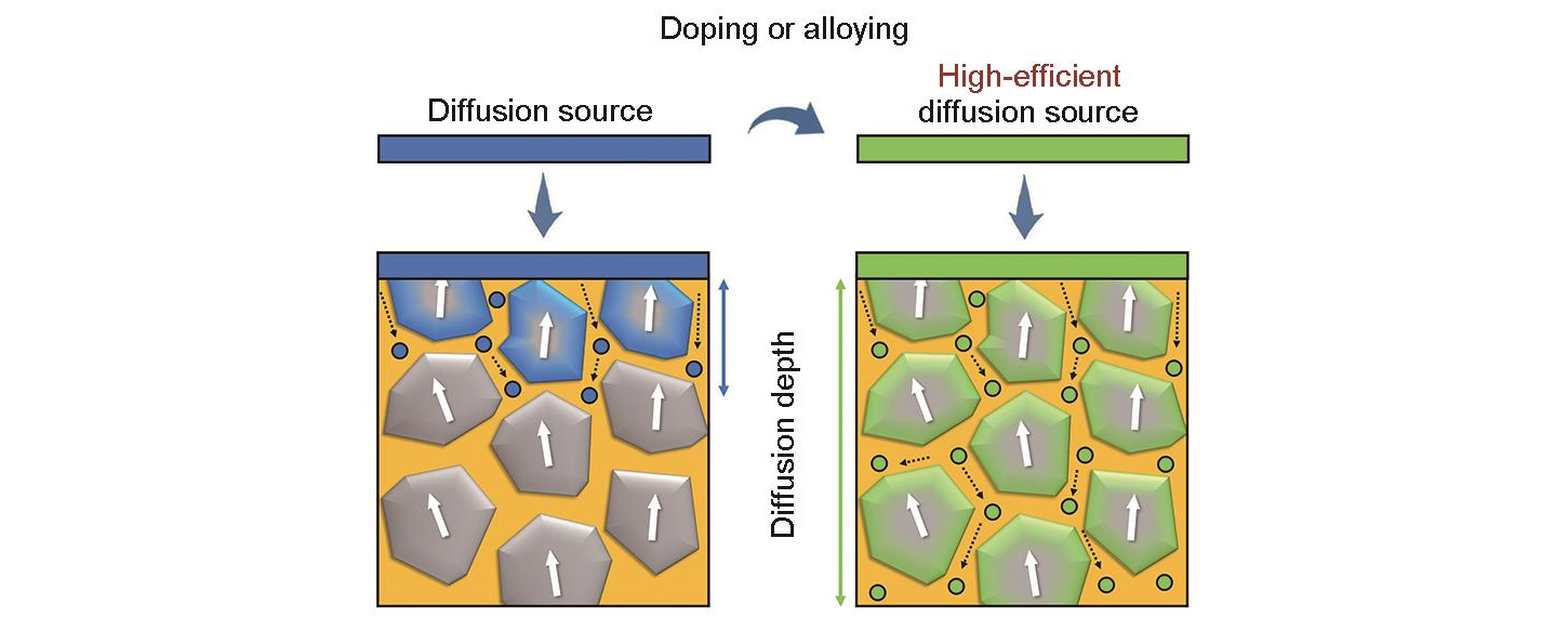 | تشتمل تقنية نشر حدود الحبوب ذات العناصر الأرضية النادرة الثقيلة على تقنية نشر الرذاذ المغنطروني وتقنية نشر طباعة الشاشة. يؤدي تطبيق هذه التقنية، التي توزع العناصر الأرضية النادرة الثقيلة ذات المحتوى المنخفض على طول حدود الحبوب، إلى تحسين عيوب حدود الحبوب وتحقيق زيادة كبيرة في Hcj. |